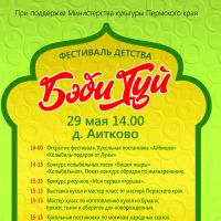 Фестиваль состоится 29 мая в 14-00 по адресу: д.Аитково, Лысьвенского района, Пермского края, ул.Речная,1-а.