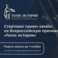 Прием заявок на Всероссийскую премию в сфере исторического просвещения молодежи «Голос истории"