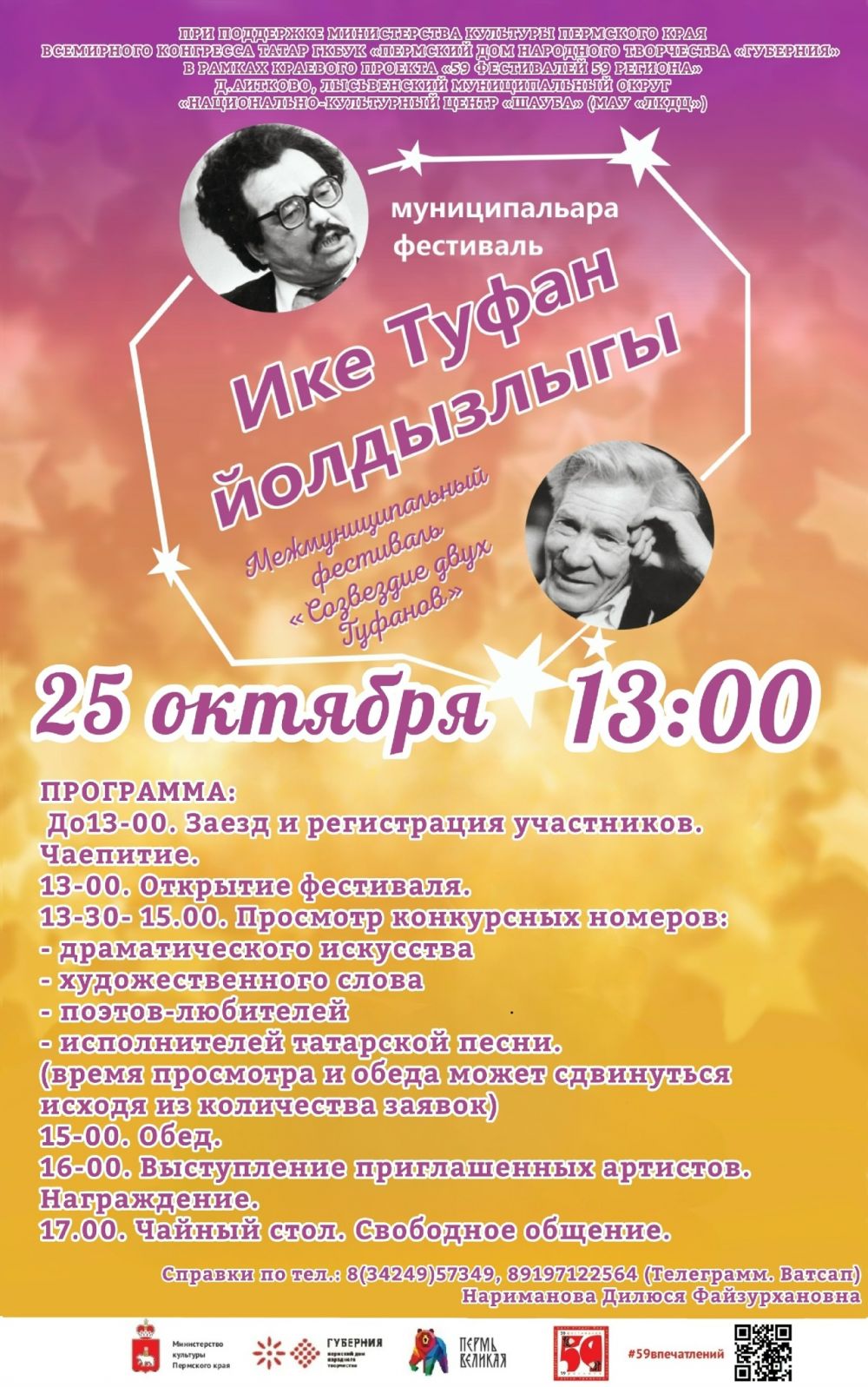 25 октября 2025 года в 13-00 в д.Аитково Лысьвенского муниципального округа, на базе «Национально-культурного центра «Шауба» (МАУ «ЛКДЦ») состоится Межмуниципальный фестиваль «Созвездие двух Туфанов».