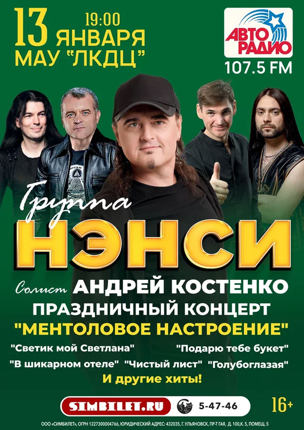 На концерте группы «НЭНСИ» вы получите незабываемые впечатления и окунетесь в атмосферу романтики 90-х. Вас ждут любимые хиты и новые душевные композиции в живом исполнении фронтмена Андрея Костенко с музыкальным коллективом!