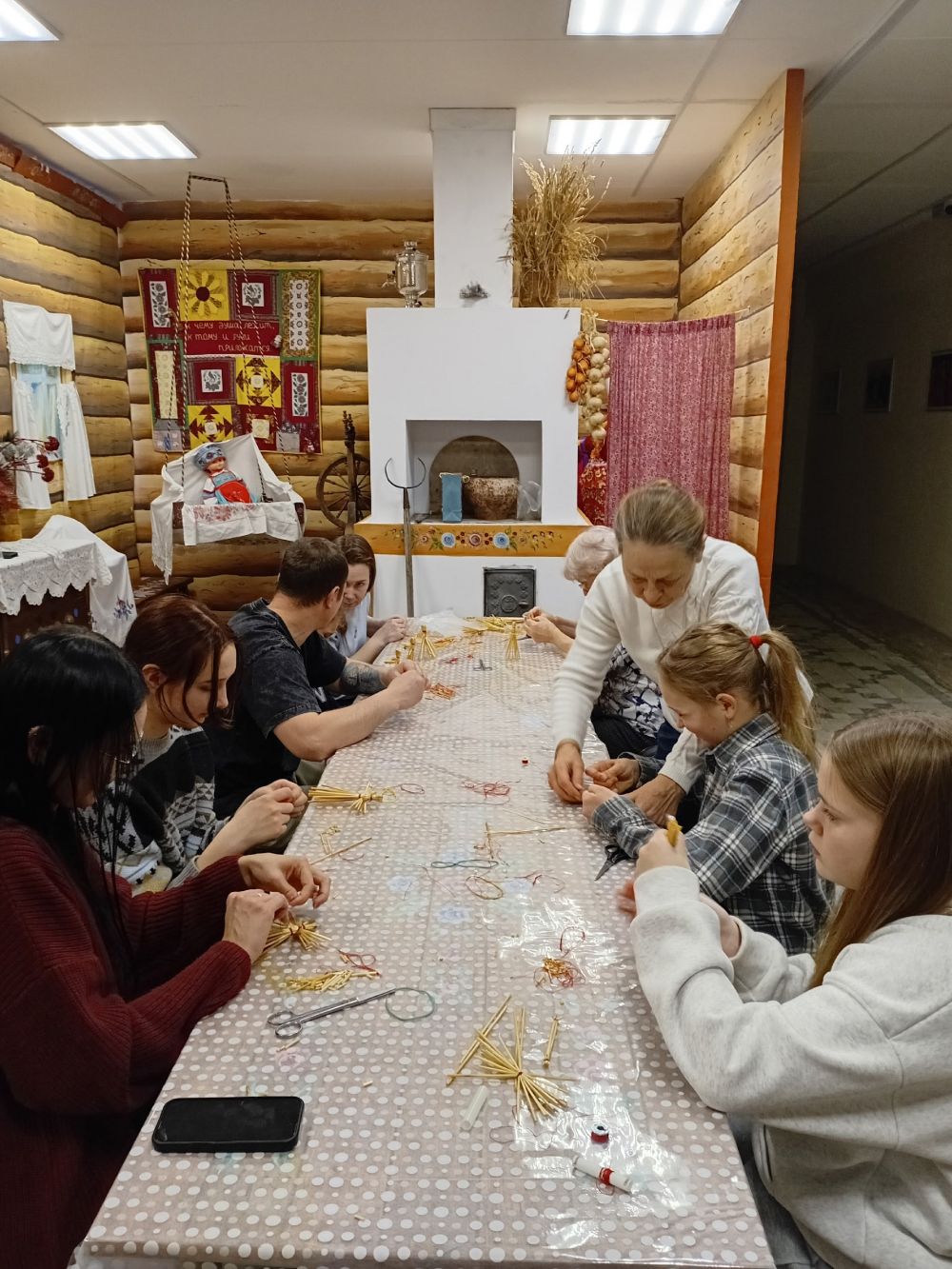 Создали своими руками оберег Рождественского ангела из природного материала — соломы и тряпичной куклы. Нам помогали мастера Лидия Александровна Оборина и Татьяна Леонтьевна Колодкина, ну и, конечно, расписной талисман от красильщиков.