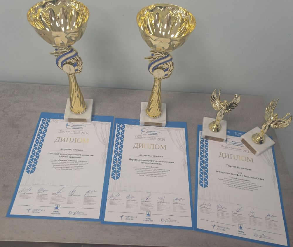 4 апреля Народный хореографический коллектив «ВЕЧНОЕ ДВИЖЕНИЕ» блестяще показал себя на отборочном этапе «Всероссийской Танцевальной Олимпиады» в Перми! Ребята стали лауреатами сразу трех степеней – I, II и III! И это еще не всё! Их ждет Гранд-финал в Санкт-Петербурге, где они сразятся за победу с 100 сильнейшими танцевальными коллективами России!