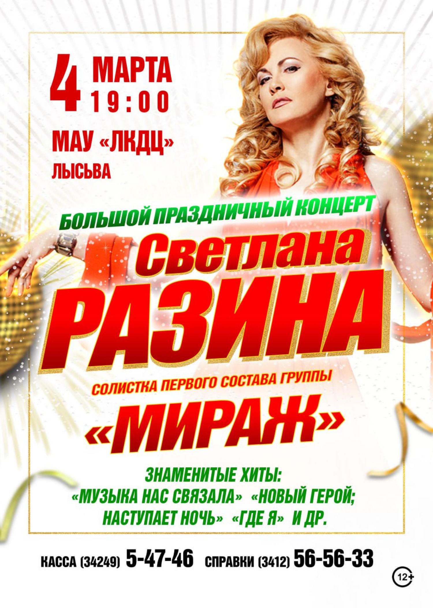 Большой сольный концерт первой солистки легендарной группы «Мираж» Светланы Разиной!