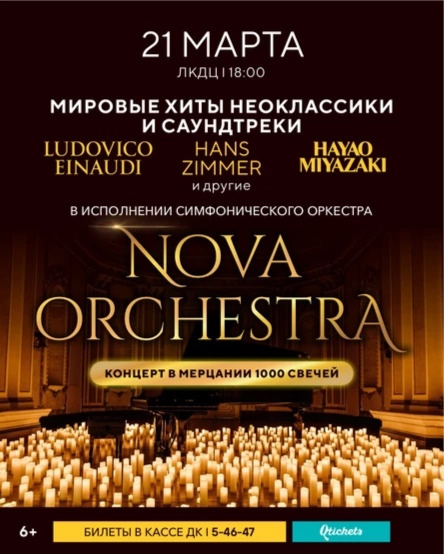 Музыка Эйнауди, Циммера, Миядзаки и другие композиторы киномузыки в уникальном симфоническом шоу NOVA ORCHESTRA в мерцании 1000 свечей.
