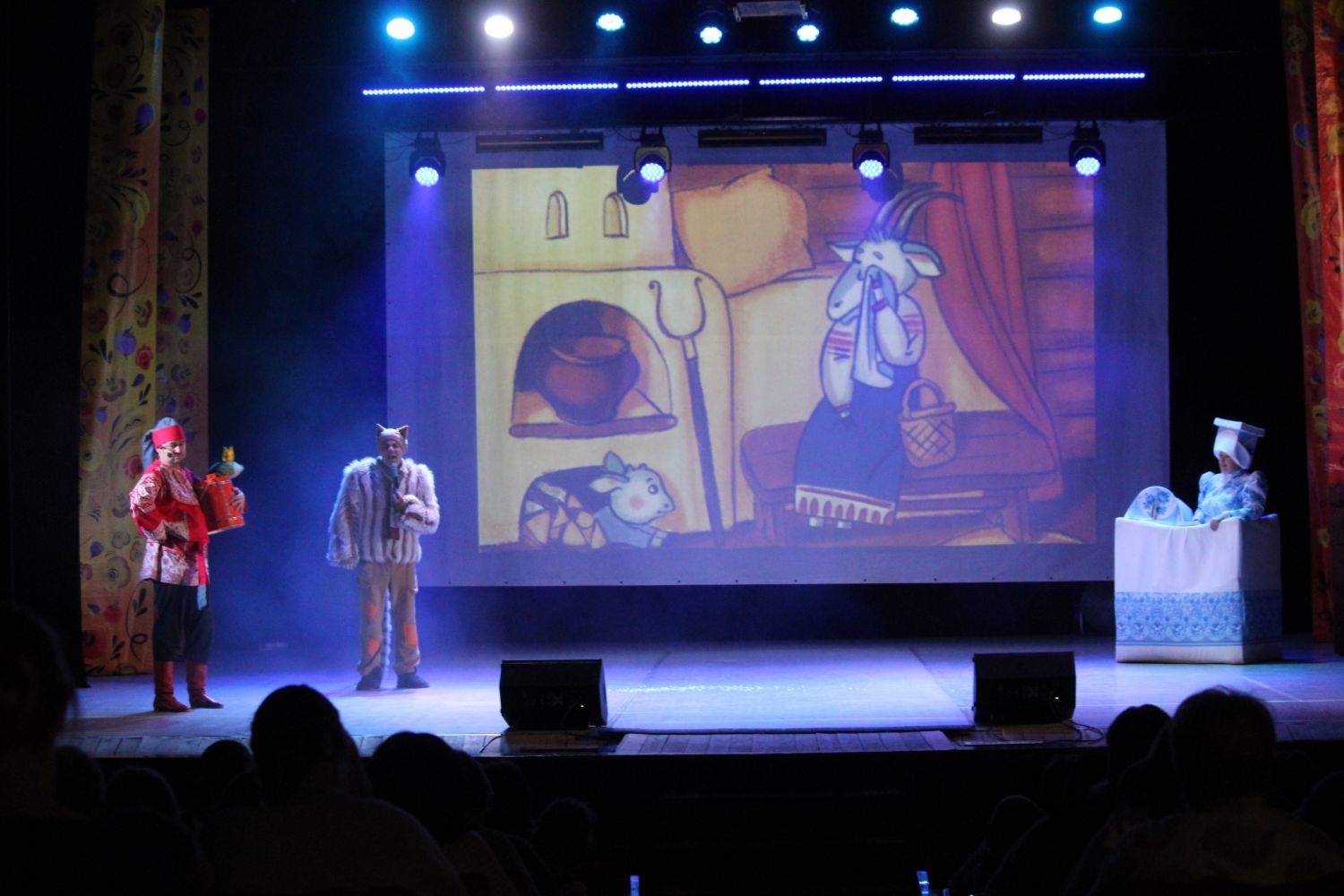 Ребятишки веселились от души. Сударыня Печка, Емеля, Кот Котофеич и Домованя играли, плясали, пели вместе с детьми.