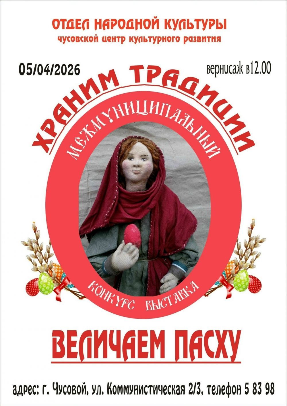 В первых числах апреля в отделе народной культуры города Чусового открылась Межмуниципальная выставка-конкурс «Храним традиции. Величаем Пасху».